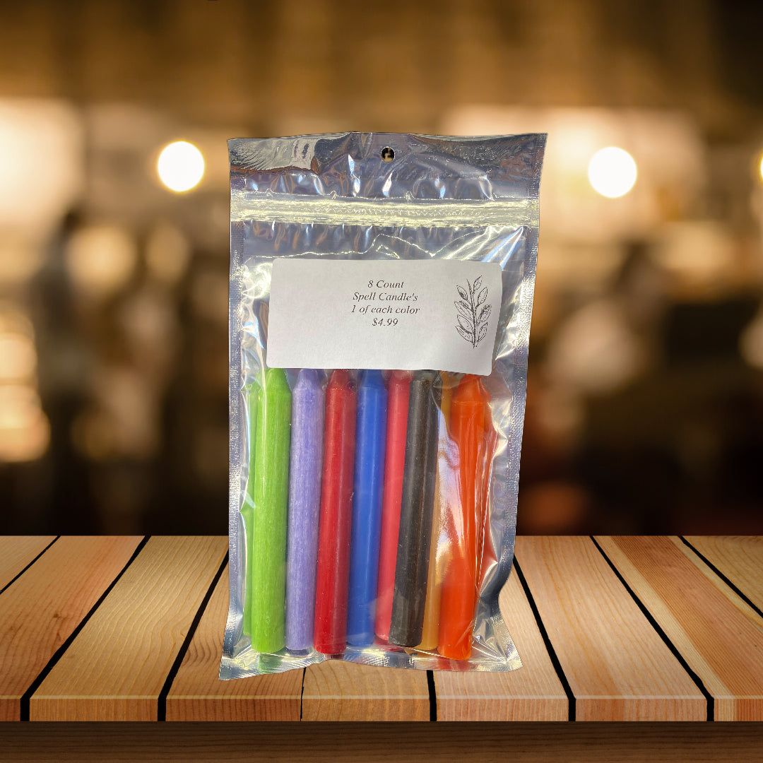 Approx. 4in long, this 8ct comes in all the colors you need to do any spell you can think up! Comes with Black, Red, Pink, Orange, Yellow, Green, Blue, & Purple.